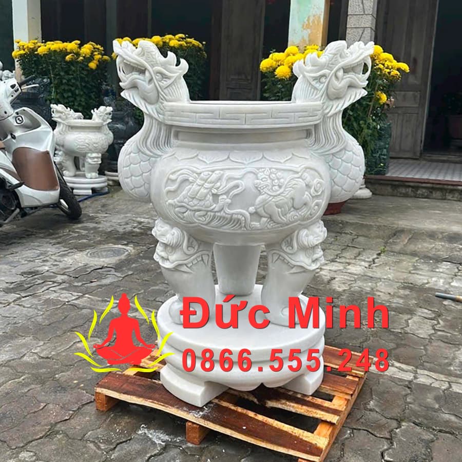 Lư Hương Đá Tứ Linh Đá Cẩm Thạch Trắng Đẹp