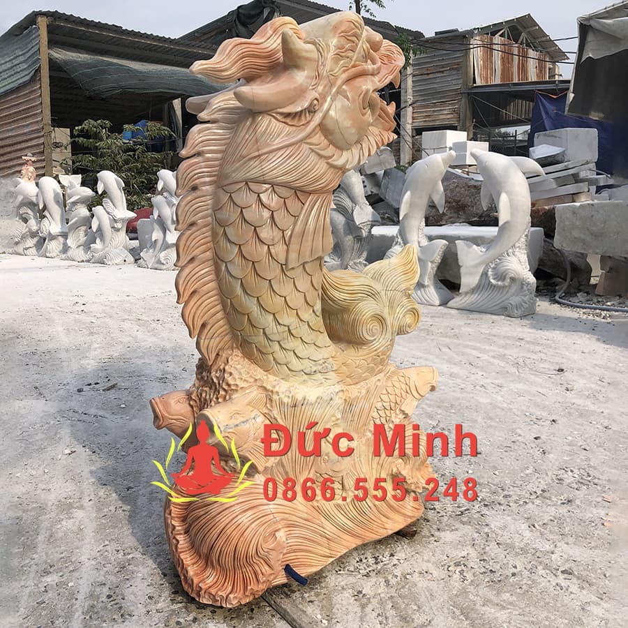 Tượng Cá Chép Hóa Rồng Đá Cẩm Thạch Vàng Đẹp
