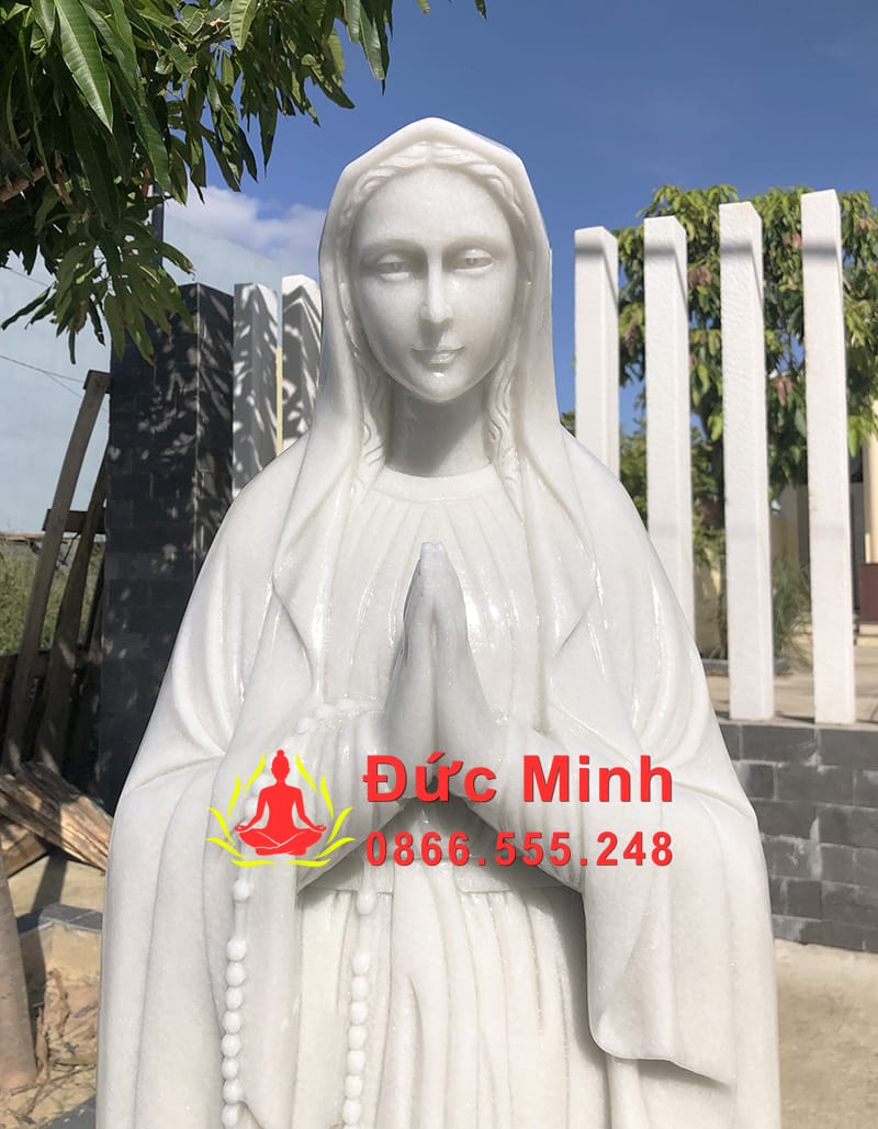 Tượng Đức Mẹ Lộ Đức Bằng Đá Trắng Nuyên Khối Đẹp