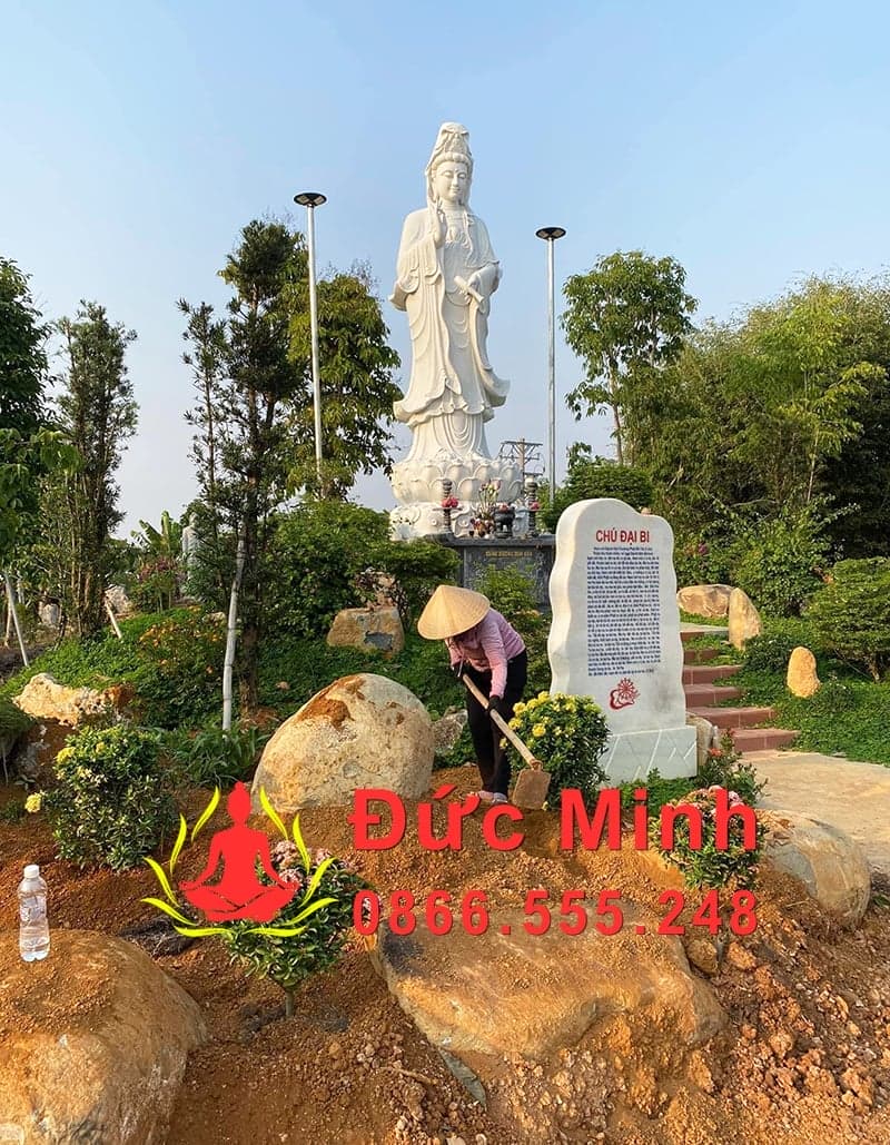 Tượng Mẹ Quan Âm Đá Cẩm Thạch Trắng Cao 3m