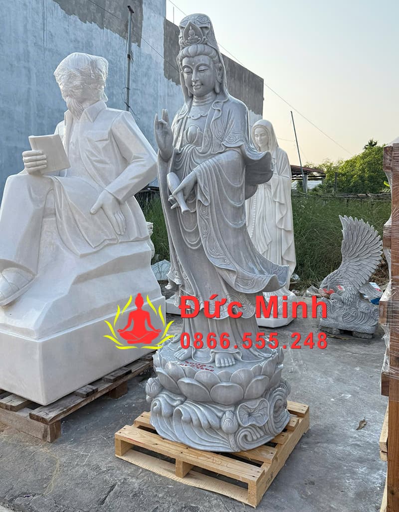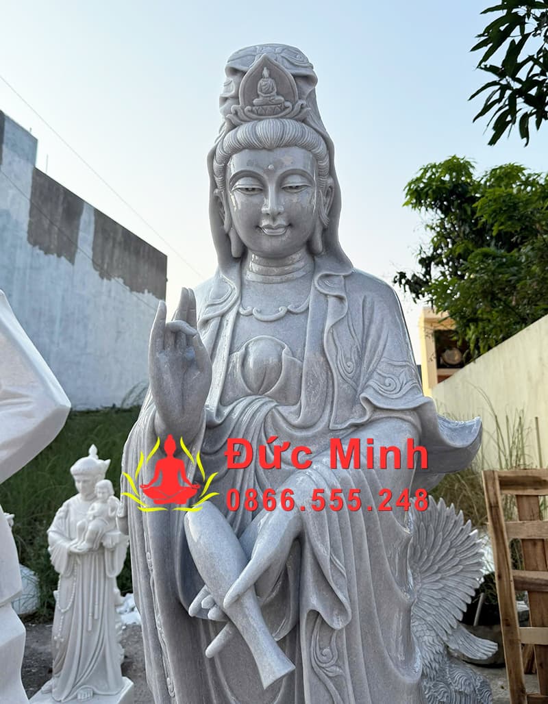 Tượng Phật Quan Âm Đá Cẩm Thạch Xám Cao 2m Đẹp