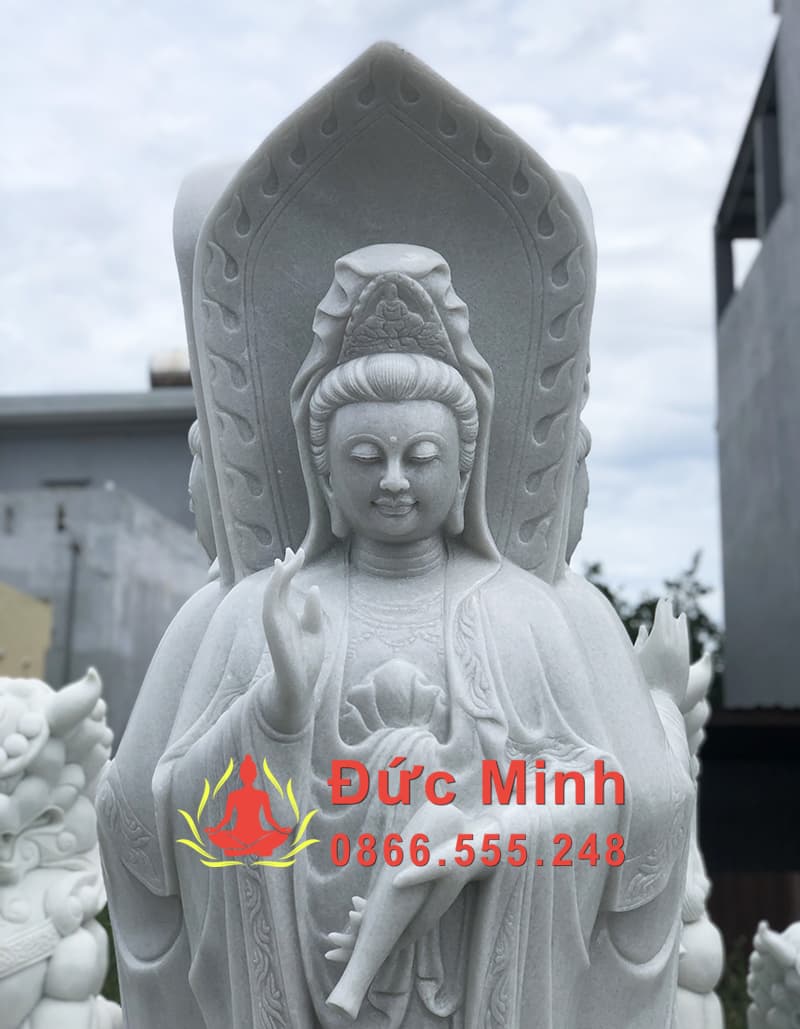 Tượng Phật Quan Âm Tam Diện Đá Trắng Đẹp