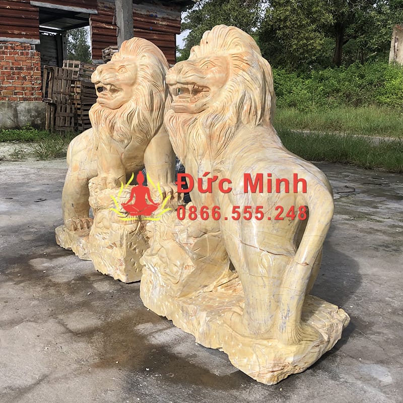 Tượng Sư Tử Đá Cẩm Thạch Vàng Cà Rốt Đẹp