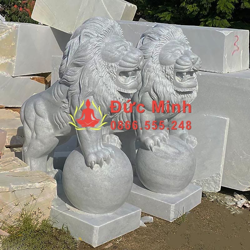Tượng Sư Tử Đá Đứng Quả Địa Cầu Để Cổng Đẹp